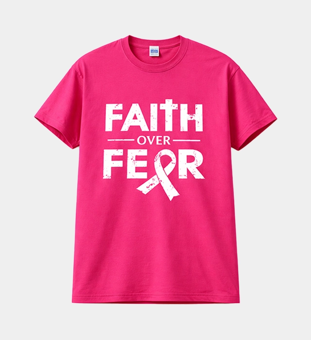 Wear your strength on your sleeve. This signature graphic tee combines a powerful message of resilience with a bold, vibrant aesthetic. Featuring a distressed “Faith Over Fear” typographic design and an integrated awareness ribbon, this shirt is more than just apparel—it’s a testament to courage and unwavering hope.